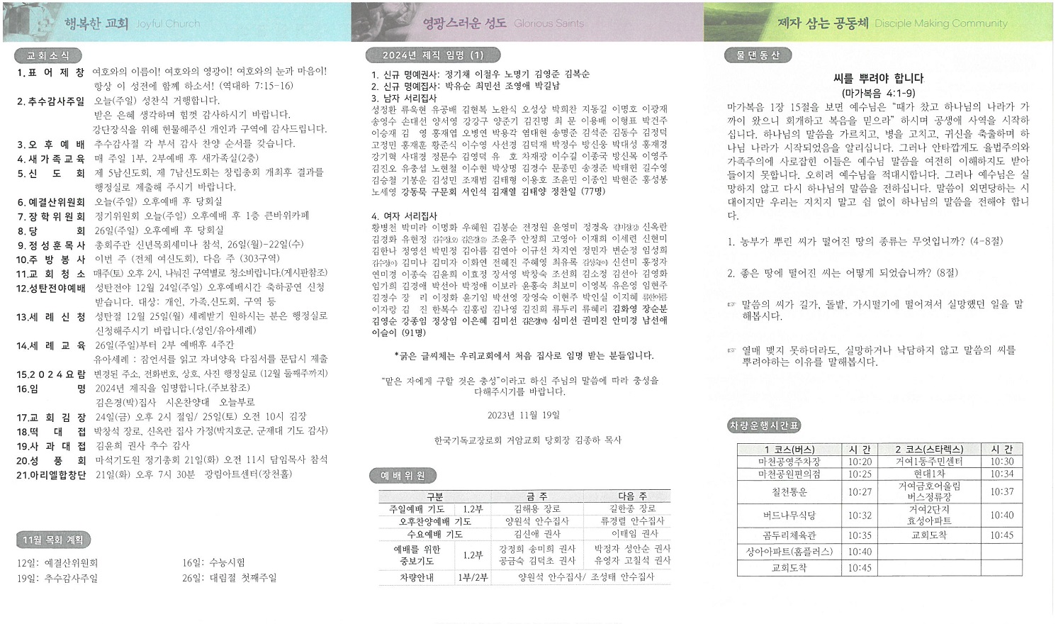 2023³â 11¿ù 19ÀÏ ±³È¸ÁÖº¸